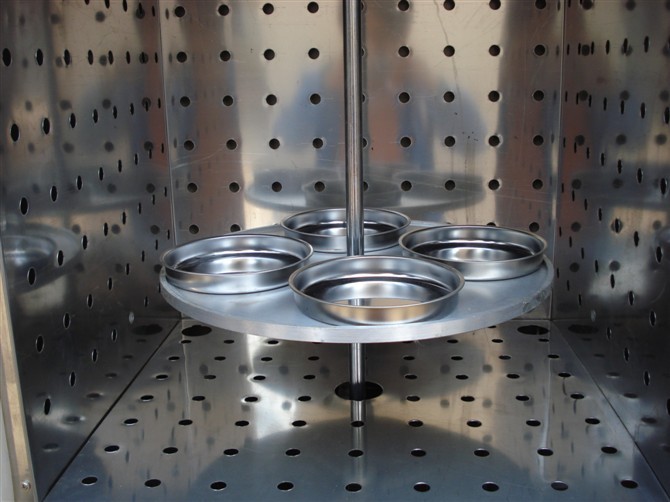 5、工作室:工作室裝有可以放置四只瀝青盛樣皿的轉盤它由電機帶動。也可以取去轉盤,作為普通很恒溫箱使用。