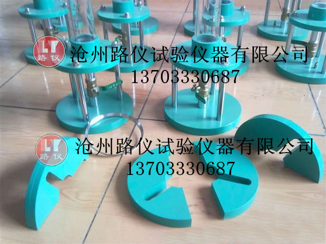 將滲水儀用壓力在密封材料上,使?jié)B水儀底座與密封材料環(huán)吻合,加上四塊配重塊,以防壓力水從底座與路面間流出,